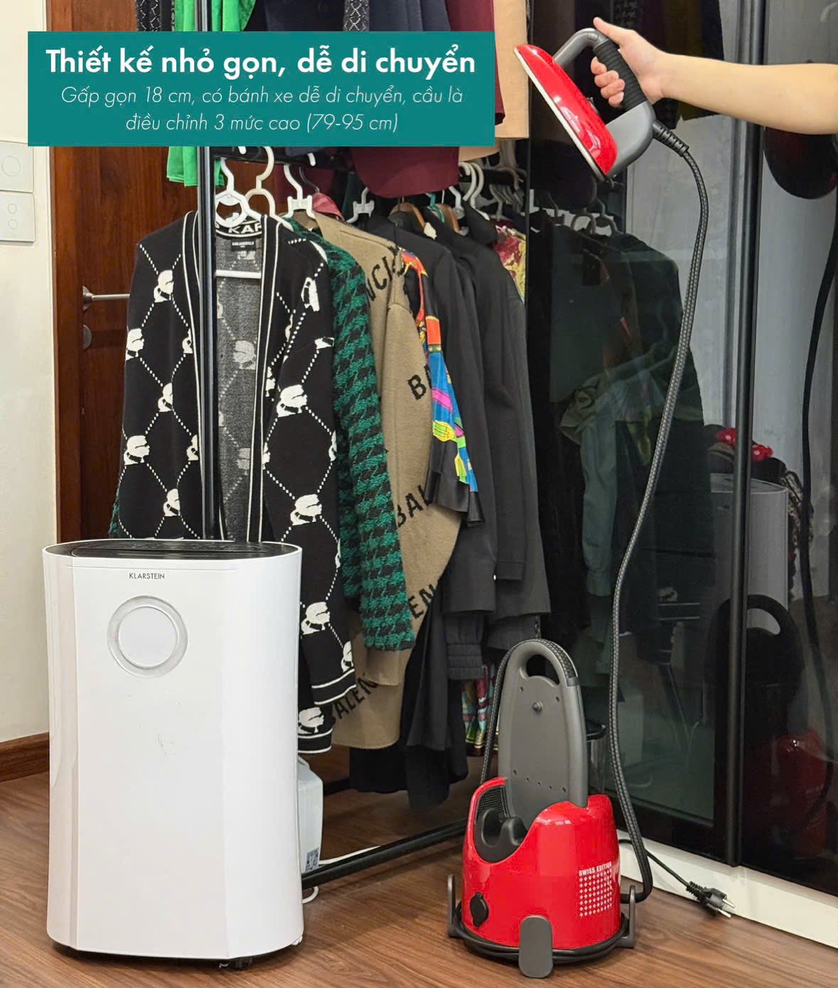 Laurastar Lift sở hữu thiết kế nhỏ gọn và tay cầm chắc chắn, giúp bạn dễ dàng di chuyển đến bất kỳ đâu trong nhà. Chân chống trượt được thiết kế thông minh cho phép bạn đặt máy an toàn tại mọi vị trí – sẵn sàng hỗ trợ bất cứ lúc nào bạn cần chăm sóc quần áo.
