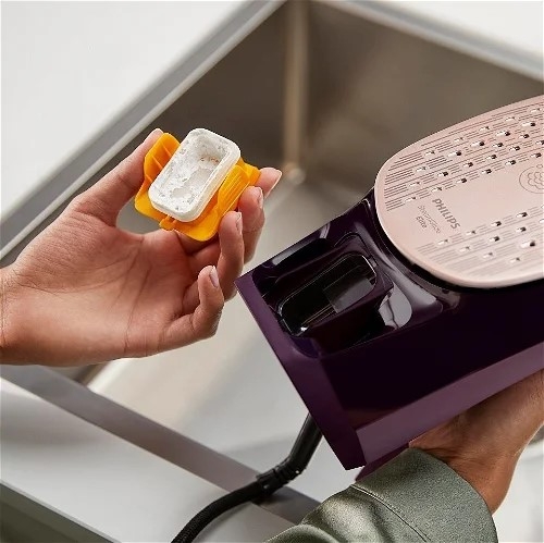 Chức năng tẩy cặn nhanh giúp làm sạch bàn ủi dễ dàng hơn và đảm bảo hiệu suất phun tia tốt trong thời gian dài.