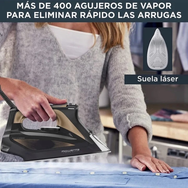 Bàn là hơi nước Rowenta DW5325 trang bị mặt đế Microsteam 400 HD mới, cung cấp khả năng phân phối hơi nước tốt nhất trên thị trường với hơn 400 lỗ thoát hơi nước đang hoạt động và cải thiện đáng kể trải nghiệm ủi. Ngoài hiệu quả và độ chính xác cao, bàn ủi còn gây ấn tượng với đầu ủi đặc biệt nặng giúp làm phẳng hoàn hảo những vùng dễ tiếp cận như đường nối, cổ áo và các cạnh hẹp. Các chức năng thiết thực như ngăn chứa nước trong suốt giúp kiểm soát mực nước dễ dàng và chính xác cũng như các tùy chọn điều chỉnh thông minh để có trải nghiệm ủi thoải mái hơn.
