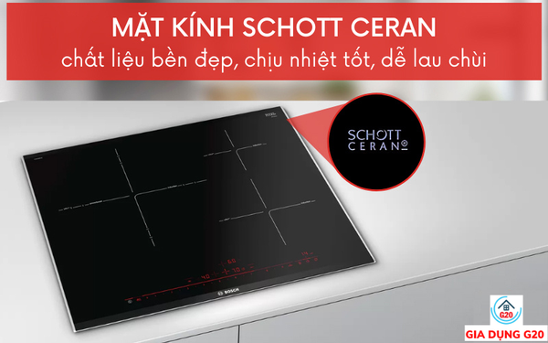 Mặt kính cao cấp Schott Ceran giúp chống trầy xước, chống bám bụi bẩn, dễ lau chùi, đặc biệt là khả năng chống rạn nứt rất tốt, bảo vệ bề mặt kính luôn đẹp, tinh tế khác biệt so với các sản phẩm bếp từ khác.