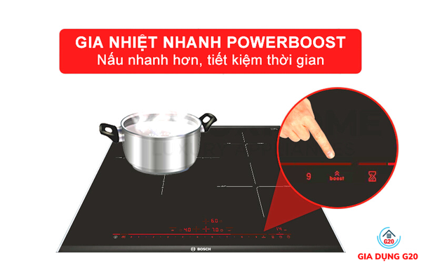 PowerBoost là một tính năng được cải tiến trong bếp từ, luôn được trang bị trong những mẫu bếp cao cấp. Nếu bạn muốn tăng công suất trong khi nấu ăn trên bếp từ Bosch PID675DC1E thì chỉ cần khởi động PowerBoost, mức nhiệt tại vùng đang nấu sẽ tăng lên mức cao nhất, đẩy nhanh tốc độ nấu chín thức ăn.