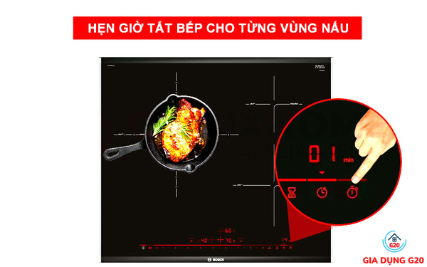 • Cài đặt sẵn thời gian nấu thông minh: Giúp bạn tắt vùng nấu đã chọn sau một khoảng thời gian đã định