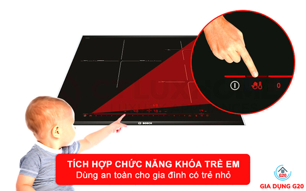Ngoài những tính năng hiện đại thì bếp từ Bosch serie 8 PID675DC1E còn được trang bị những tính năng an toàn nhằm bảo vệ người dùng và thiết bị: