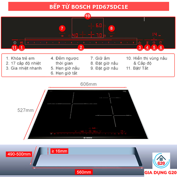 Thông số kỹ thuật của Bếp từ Bosch BOSCH Serie 8 PID675DC1E 3 Vùng nấu