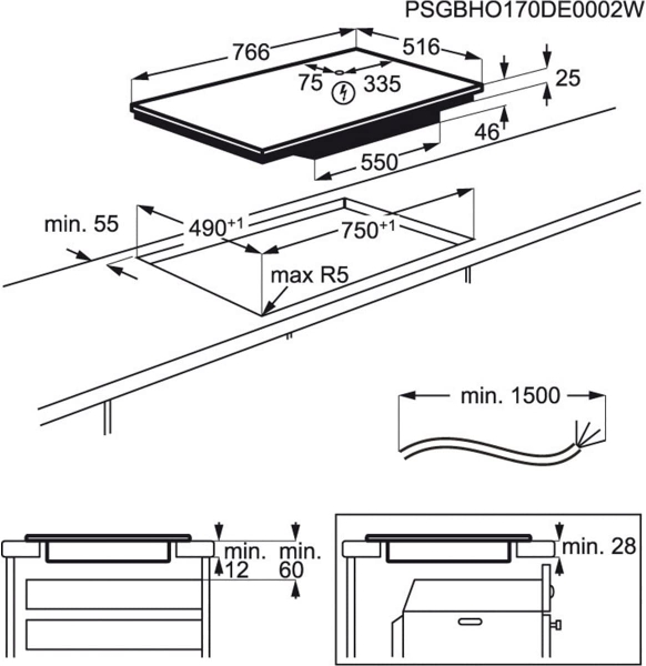 - Kích thước cắt W x D (cm): 75.0 x 49.0