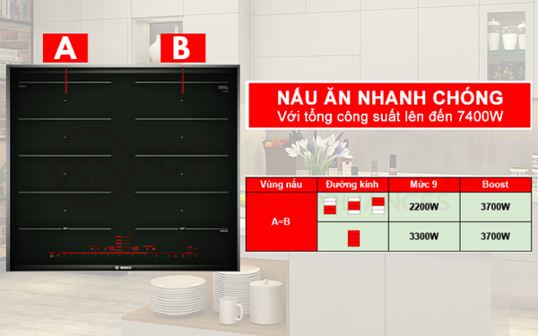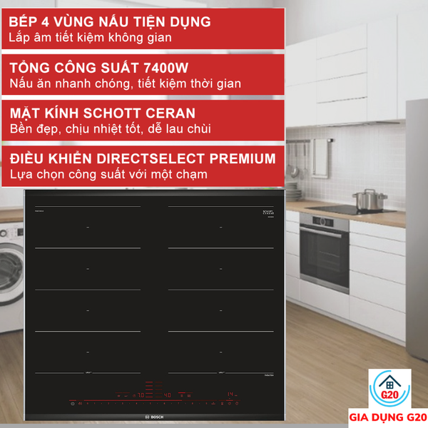 Bếp Từ Bosch PXX675DC1E Series 8 của thương hiệu Bosch nổi tiếng tại Đức, bếp được sản xuất tại nhà máy Bosch tại Tây Ban Nha với tiêu chuẩn nghiêm ngặt, sẽ là một lựa chọn lý tưởng cho bạn. Có các vùng nấu có khả năng kết hợp 2 vùng nấu thành một vùng nấu lớn, và bạn có thể đặt dụng cụ nấu đủ kích thước trên bất kỳ vị trí nào trên mặt bếp. Thuộc dòng bếp từ cao cấp, bếp từ đa điểm có giá thành rất cao, vì vậy khách hàng lựa chọn rất đắn đo để tìm được một chiếc bếp đa điểm chất lượng mà giá thành lại phù hợp.