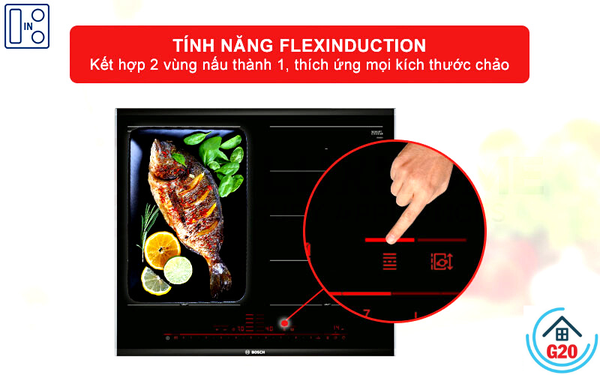 - Công nghệ cảm ứng Flex Induction giúp kết nối 2 vùng nấu