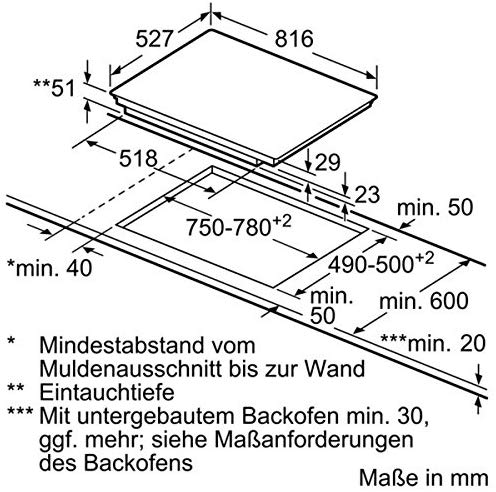 Mặt kính Schott Ceran cao cấp của Đức, bo viền inox 2 bên và vát cạnh trước