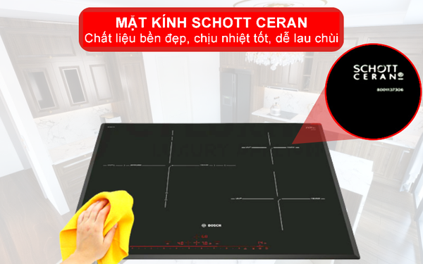 Mặt kính Schott Ceran bền đẹp, khả năng chịu nhiệt cao và dễ lau chùi