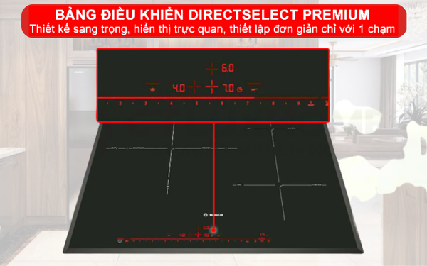 Bếp từ Bosch PID651DC5E được trang bị bảng điều khiển DirectSelect Premium với cảm biến rộng rãi, giúp bạn kiểm soát khu vực nấu hiệu quả hơn. Bếp được trang bị 17 mức công suất nấu, cảm biến nhanh chóng chỉ với một lần chạm. Với bảng điều khiển DirectSelect, bạn có thể dễ dàng thao tác chọn vùng nấu và công suất nhanh chóng hơn mà không cần sử dụng tăng giảm công suất như các loại bếp thông thường. Đặc biệt bảng điều khiển có thể ẩn đi khi bạn tắt bếp, mang đến sự sang trọng hoàn mỹ. Đồng thời giúp bạn dễ dàng lau chùi mà không lo mờ các nút nhấn.