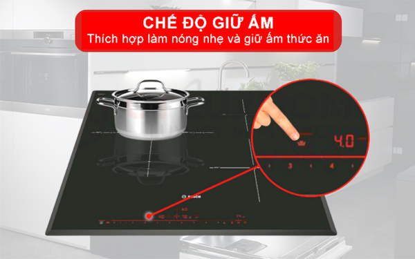 Bếp từ Bosch PID651DC5E được trang bị chế độ giữ ấm giúp bạn hâm nóng hoặc giữ ấm món ăn tiện lợi với chỉ một lần chạm. Với mỗi khi bạn cần hâm nóng đồ ăn. bạn chỉ cần thao tác bếp sẽ tự động hâm nóng đồ ăn cho bạn với mức công suất đã được thiết lập trước đó. Giúp món ăn của bạn giữ được hương vị và giữ ấm nó trong thời gian nhất định.