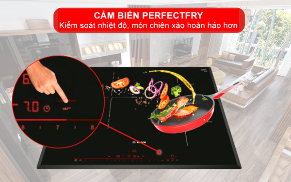 Các món chiên xào sẽ luôn hoàn hảo hơn nếu nó được nấu với mức nhiệt phù hợp, và cảm biến PerfectFry có thể giúp bạn điều đó. Khi kích hoạt, bếp sẽ giúp bạn đo và theo dõi lượng nhiệt trong chảo và điều chỉnh một cách thích hợp trong quá trình bạn chiên xào. Phụ thuộc và 5 mức công suất mà bạn đã thiết lập trước đó, bếp sẽ tự động điều chỉnh các mưc chiên xào phù hợp. Điều này sẽ giúp các món chiên xào được giữ trọn hương vị tránh tình trạng khi chiên miếng thịt bị cháy nhưng bên trong vẫn còn đỏ tươi.