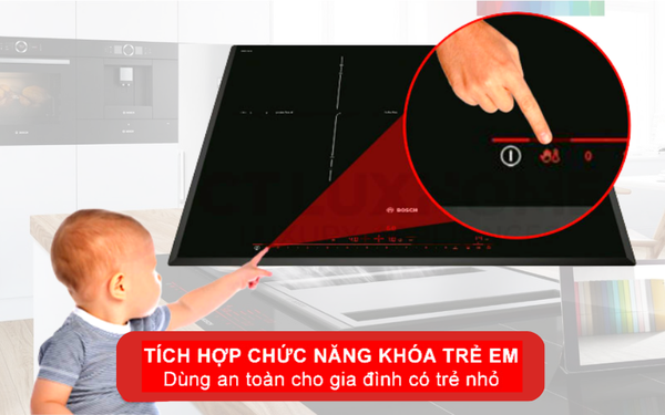 Đi cùng những chức năng nấu nướng hiện đại thì cũng cần có những tính năng an toàn thiết yếu để bảo vệ người dùng và thiết bị. Các tính năng an toàn được trang bị trên bếp từ Bosch PID651DC5E sau đây: