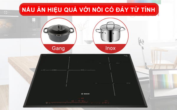 Đối với bếp từ, lựa chọn nồi nấu phù hợp là rất quan trọng khi bếp chỉ nhận cảm ứng từ. Các nồi chảo có đáy từ tính như thép không gỉ, gang, inox,... đều có thể tiếp nhận và truyền nhiệt tốt.