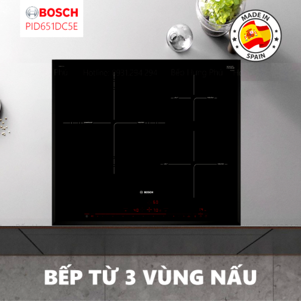Bếp từ Bosch PID651DC5E có 3 vùng nấu riêng biệt, giúp người dùng linh hoạt trong việc sử dụng để đạt hiệu suất cao, tối ưu thời gian vào bếp hiệu quả. Bếp từ Bosch PID651DC5E rất phù hợp với thiết kế âm, tạo thêm thẩm mĩ cho căn bếp và tiết kiệm không gian.