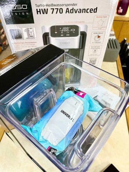 Chỉ bằng một nút bấm và chỉ trong vài giây, bình thuỷ điện Caso đã sẵn sàng nước nóng để bạn sử dụng. Tiết kiệm năng lượng: 50% so với ấm đun nước tiêu chuẩn.