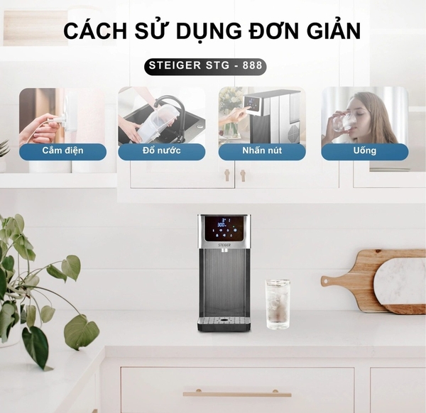 Bình thủy điện nóng lạnh Steiger STG 888 công suất 2600W, dung tích 3,8 lít thoải mái sử dụng