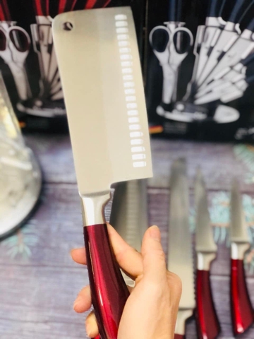 Với thiết kế chuyên dụng dùng cho nhiều mục đích đa dạng khi làm bếp, từ việc chặt xương, thái thịt, gọt rau củ cho đến việc chiên xào thức ăn... tất cả đều có trong bộ dao và dụng cụ Bộ dao kéo làm bếp 8 món. Bộ sản phẩm có chất liệu lưỡi thép không gỉ và cán thép chống trượt, kèm theo là giá để rất gọn gàng và sang trọng.