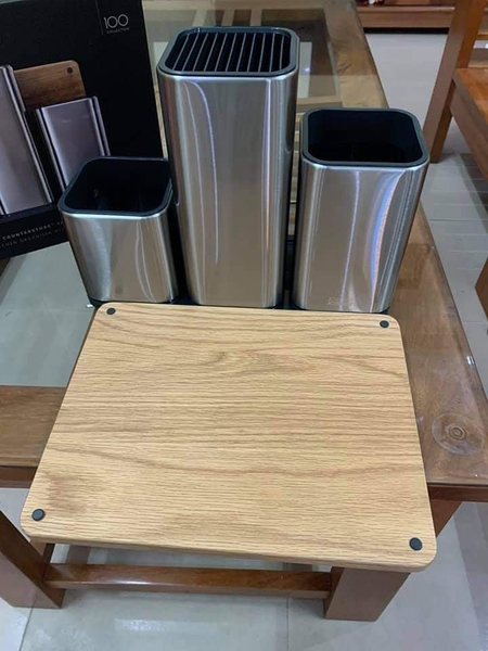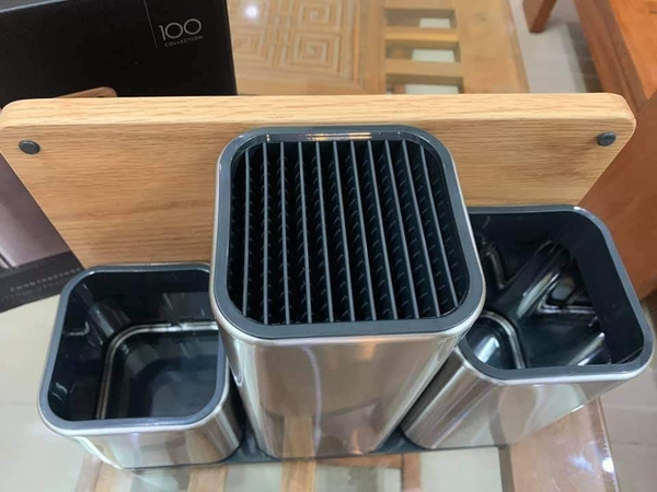 • Bộ sản phẩm gồm 1 hộp đựng đồ nhà bếp như dao , đũa, muỗng… và kèm 1 thớt tre kháng khuẩn.