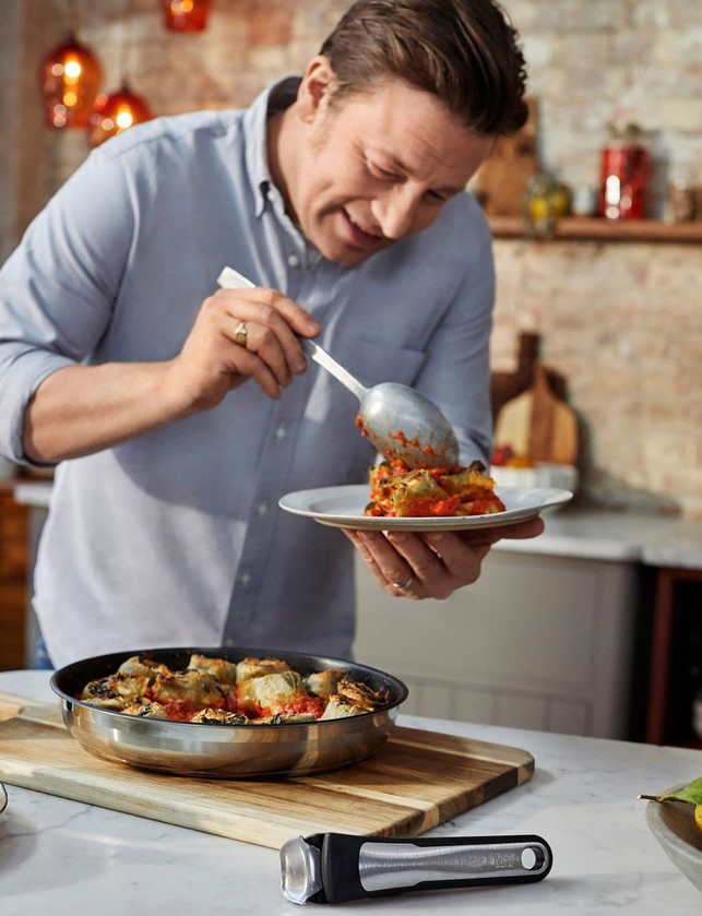 Được thiết kế bởi Jamie Oliver: "Chiếc tay cầm này giống như có thêm một bàn tay! Bạn có thể lấy một chiếc chảo nóng từ lò nướng, đặt nhiều nồi trên bếp cùng một lúc Không cần tay cầm, ngoài ra mọi thứ đều được sắp xếp siêu gọn gàng. Dòng sản phẩm này rất phù hợp để áp chảo rau trước khi nấu chậm hoặc nướng thịt trước khi nướng. Và nắp bảo quản kín hơi có nghĩa là bạn có thể để thức ăn thừa đã nguội vào thẳng trong tủ lạnh.