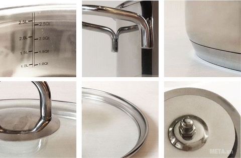 - Quai nồi dạng quai đũa được hàn bằng máy hàn công nghiệp với kỹ thuật hiện đại, không những trang nhã mà còn đặc biệt chống nóng, giảm nhiệt truyền từ thân nồi lên quai hơn 30% so với các loại nồi khác, vì vậy đảm bảo an toàn cho người sử dụng khi đun, nấu ở nhiệt độ cao (100 - 240oC).