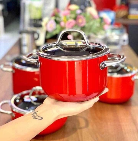 Bộ nồi Silit Passion Red 4 món có 3 nồi cao đường kính lần lượt là 16 cm (dung tích 2 lít), 20cm (dung tích 3,7 lít), 24cm (dung tích 6,4 lít) và một nồi thấp đường kính 20cm (dung tích 3 lít). Bộ sản phẩm đẹp, tiện lợi như vậy không nên bỏ qua.