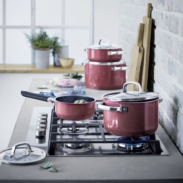 Màu sắc chủ đạo của Bộ nồi WMF Fusiontec Essential Kochgeschirr Set 3 teilig là màu đỏ mận nổi bật, bắt mắt. Màu sắc này thu hút, sang trọng và sạch sẽ. Màu sắc này kích thích tinh thần người nội trợ, giúp việc nấu nướng vui vẻ, thú vị hơn. Lớp màu sắc này được tạo thành từ công nghệ tiên tiến, đảm bảo màu bám lâu, đẹp, không dễ bị phai màu hay ảnh hưởng đến chất lượng thức ăn.