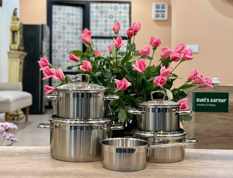Khi nhìn sơ qua tổng thể bộ sản phẩm, bạn sẽ thấy chúng có độ sáng bền lâu rất đẹp. Tất cả là nhờ vào chất liệu Cromargan 18/10 làm nên sản phẩm. Đây là chất liệu có độ bền, độ chịu nhiệt cao. Khi sử dụng để làm các món đồ gia dụng, đặc biệt là nồi sẽ có khả năng bắt nhiệt nhanh, giữ nóng lâu và không hề bị đen nồi cho dù bạn đun tại bất cứ loại bếp nào.
