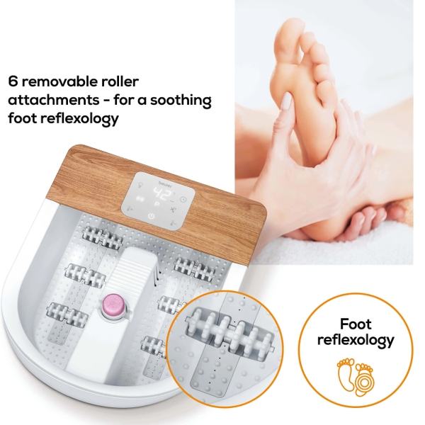 Ngoài chức năng chính là ngâm nước nóng, Bồn Ngâm Chân Beurer FB 65 foot spa còn có chức năng massage rung và massage bong bóng cùng với 6 con lăn bên dưới lòng bàn chân. Với những trang bị như vậy, đôi chân bạn hoàn toàn được thả lỏng như khi đi massage ngoài tiệm.