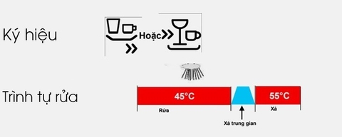 - Đối tượng áp dụng chương trình rửa: Ly, chén đĩa mỏng, dao kéo nhạy cảm với nhiệt độ.
