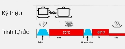 - Trình tự rửa: Tráng -> rửa với nhiệt độ 65ºC -> xả trung gian -> xả nhiệt độ 65ºC -> sấy khô.