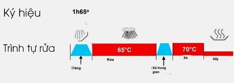 Rửa 1 giờ 65ºC hay 1h65ºC được ký hiệu đơn giản như tên gọi trên cả bảng điều khiển và sách hướng dẫn, bạn rất tiện nhận biết.
