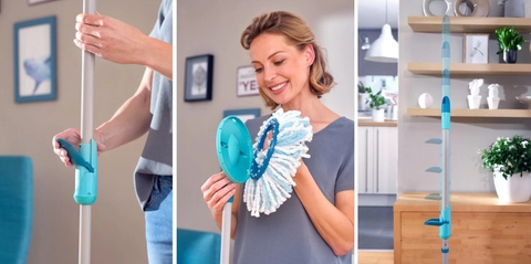 Tay cầm được trang bị cơ cấu tay cầm khoan tích hợp có thể mở rộng thêm 30cm. Khi bạn đã vắt cây lau nhà và đạt được độ ướt mong muốn của cây lau nhà, bạn chỉ cần điều chỉnh cây lau nhà cho phù hợp với chiều cao của bạn và khóa cố định.