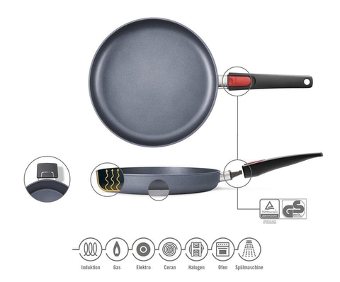 Đáy chảo làm bằng thép chuyên dụng và công nghệ cảm ứng nhiệt mới giúp nồi, chảo Woll nóng lên nhanh chóng. Ngay cả các mức nhiệt năng lượng cực cao cũng được truyền trực tiếp lên thân chảo, cho phép các sản phẩm Woll dành cho bếp từ hấp thụ gần như 100% năng lượng. Công việc nấu nướng với các sản phẩm chống dính Woll không chỉ an toàn và thậm chí còn tiết kiệm năng lượng hơn.