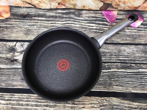 - Lớp chống dính siêu bền (không PFOA – không chì – không cadimium). Công nghệ Thermal Spot – Công nghệ chỉ số nhiệt độc quyền của Tefal cho phép bạn biết khi nào chảo của bạn đạt đến nhiệt độ thích hợp giúp bạn dễ dàng gia giảm các gia vị, hương vị cũng như là độ tươi ngon trong thức ăn của bạn.