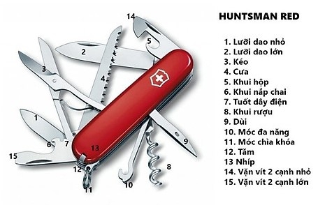 Dụng Cụ Đa Năng Victorinox Huntsman sở hữu 15 công năng vô cùng sắc bén và mạnh mẽ, giúp bạn sử dụng trong nhiều tình huống.