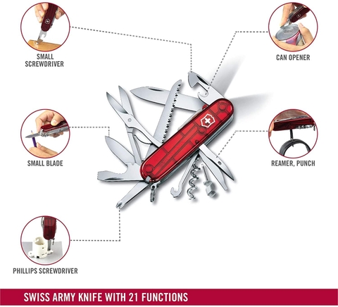 Dụng cu dao xếp đa năng bỏ túi để sử dụng hằng ngày. Khi bạn nghe thấy cụm từ Swiss Army Knife, rất có thể bạn sẽ nghĩ đến con dao huyền thoại của Sĩ quan, và huyền thoại đó tiếp tục ” sinh ra ” với con dao bỏ túi hay còn gọi là dụng cụ đa năng Victorinox Huntsman. Với việc bổ sung kéo và cưa gỗ, bạn đã sẵn sàng cắt bất cứ thứ gì. Dụng Cụ Đa Năng Victorinox Huntsman nhỏ gọn, tiện dụng và sẵn sàng cho bất cứ cuộc phiêu lưu, dã ngoại nào. Được phát minh từ năm 1884 với 15 công năng cụ thể cho từng mục đích sử dụng của bạn.