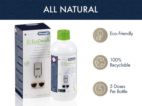 EcoDecalk DLSC500 là công cụ loại bỏ cặn bẩn sinh thái De'Longhi mới. Công thức của nó được thiết kế để 100% thân thiện với môi trường nhưng cũng mạnh mẽ hơn để chống lại cặn vôi bên trong máy pha cà phê.
