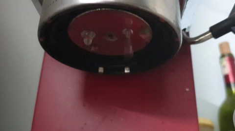 2. Dùng 1 lọ cao cỗ và 1 cái tô để hứng nước từ đầu pha và vòi hơi (xem video).