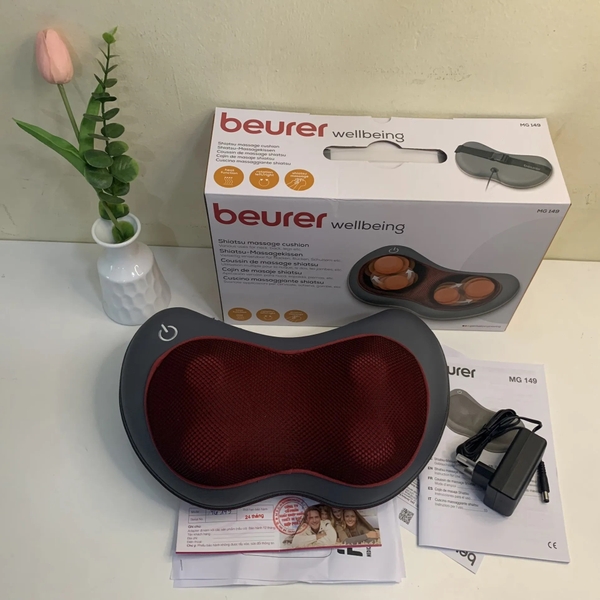 - Gối massage shiatsu Beurer MG149 được tích hợp với đèn nhiệt có công dụng hỗ trợ các bệnh về xương, khớp, làm giảm đau cơ, vết bầm tím tổn thương nhẹ. Hơn nữa, thiết bị còn giúp tăng cường trao đổi trong cơ thể, kích thích các tế bào sinh trưởng và kích thích lưu thông khí huyết, làm mất đi các tế bào chết.., giúp cải thiện vẻ đẹp làn da.
