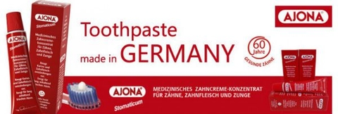 Ajona là loại kem đánh răng y tế cô đặc được tiến sỹ Dr. Liebe người Đức nghiên cứu và sản xuất bắt đầu từ năm 1952, đến nay đã hơn 60 năm phát triển.Ajona được sản xuất tại nhà máy Leinfelden - Echterdingen gần Stuttgart tại Đức.