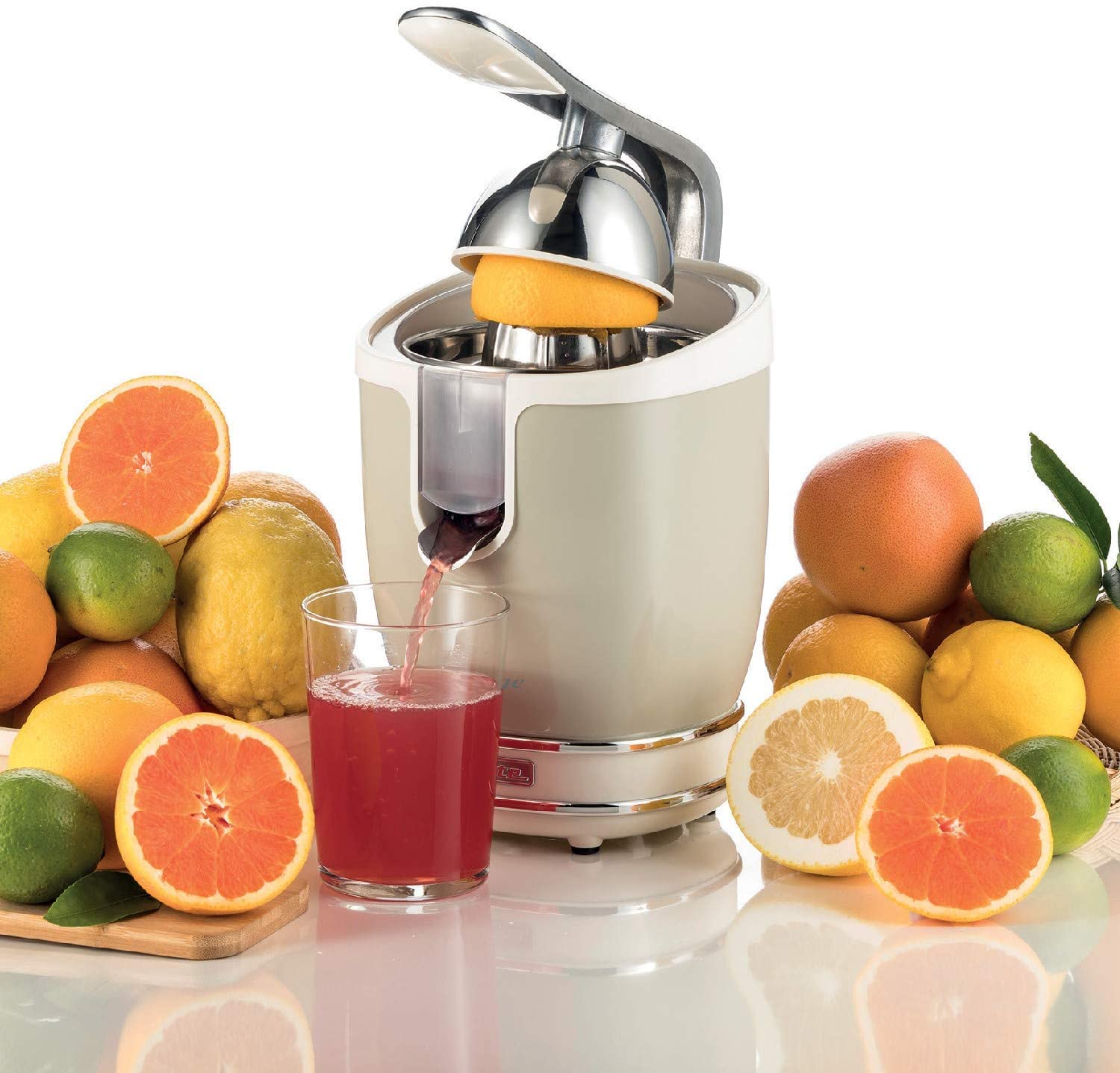 Một ly nước cam tươi vắt vào buổi sáng đảm bảo giúp bạn tăng cường năng lượng, vitamin và khoáng chất. Trên thực tế, trái cây có múi rất giàu dinh dưỡng, rất cần thiết để bắt đầu ngày mới với tâm trạng thích hợp. Với máy ép cam quýt điện Vintage có cần gạt của Ariete, bạn có thể chuẩn bị một ly nước cam ngon và chính hãng ngay tại nhà, do bạn chọn những trái ngon nhất, ngọt và chín để ép ngay. Thêm một vài viên đá và một thìa cà phê đường hoặc mật ong để tạo thêm vị ngọt. Để tăng lợi ích của Vitamin C tự nhiên có trong cam, bạn nên uống nước trái cây mới vắt, nhưng bạn cũng có thể quyết định đun sôi nước trái cây tự làm trong nồi với đường, để giữ được lâu hơn trong hộp kín.