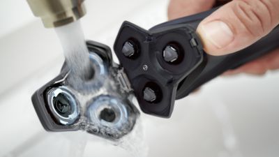 Làm sạch máy cạo râu một cách dễ dàng. Chỉ với một nút bấm, hãy lật mở đầu máy cạo râu và rửa sạch bằng nước.