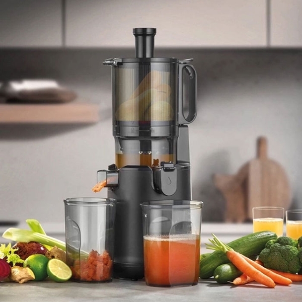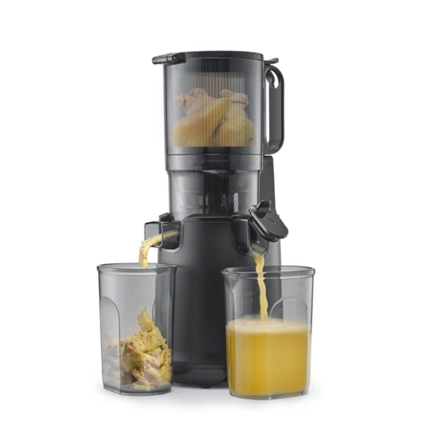 Khoang ép rộng lớn của máy cho phép sử dụng nhiều loại nguyên liệu, cùng với hai bình chứa lớn dung tích 1 lít mỗi bình giúp thu gom bã dễ dàng, tái sử dụng cho các món ăn khác.