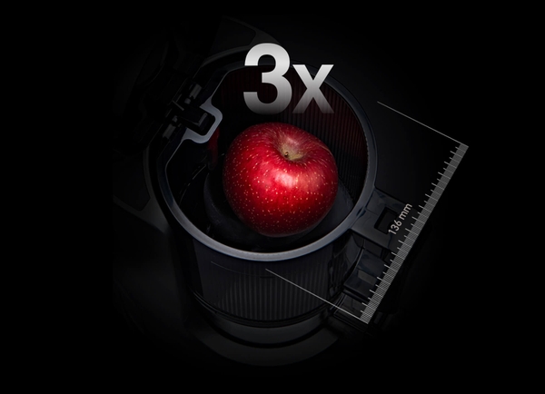 Với việc khoang cắt được mở rộng đến mức tuyệt đối, giúp cho bạn sáng tạo hơn khi làm nước ép vì giờ đây bạn có thể thêm các thành phần yêu thích của bạn khi máy đang hoạt động mà không cần phải dừng máy lại.