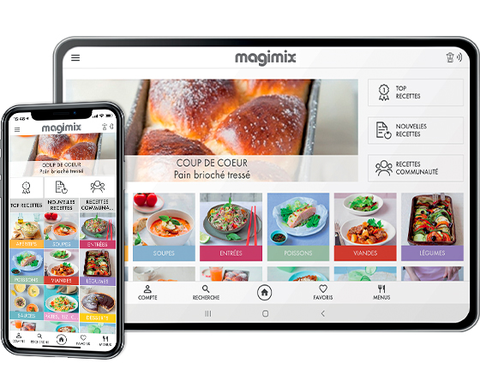 - Ứng dụng miễn phí: Tất cả các công thức nấu ăn cũng có thể được tìm thấy trên ứng dụng Magimix dành cho điện thoại thông minh và máy tính bảng (App Store và Google Play).