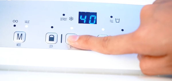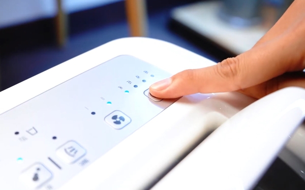 Máy sấy khí có bộ điều khiển với màn hình LCD lớn, được chiếu sáng. Điều này cho bạn biết tính năng hút ẩm có được kích hoạt hay không. Ngoài ra, thời gian hẹn giờ đã đặt, tốc độ quạt đã chọn, chức năng rã đông, nhiệt độ và độ ẩm môi trường hiện tại, độ ẩm mục tiêu, chế độ hút ẩm đã kích hoạt và bình chứa nước đầy đều được chỉ báo.