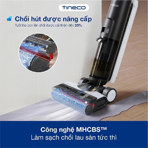 Công nghệ TINECO MHCBS™ không chỉ cung cấp nước sạch liên tục mà còn đảm bảo phân phối đồng đều lượng nước trên con lăn, làm sạch hiệu quả ngay cả với những vết bẩn khó nhất, đảm bảo hiệu quả làm sạch tối ưu. Đặc điểm này cho thấy sự chăm sóc chi tiết và cải tiến trong quá trình làm sạch, người dùng đạt được hiệu suất cao, kết quả rõ ràng khi sử dụng sản phẩm.