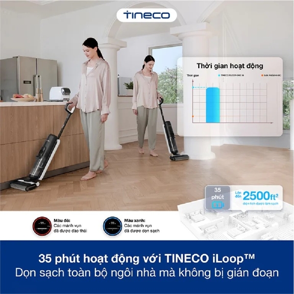 Máy hút bụi khô ướt Tineco Floor One S6 Flash Dry hoạt động lên đến 35 phút