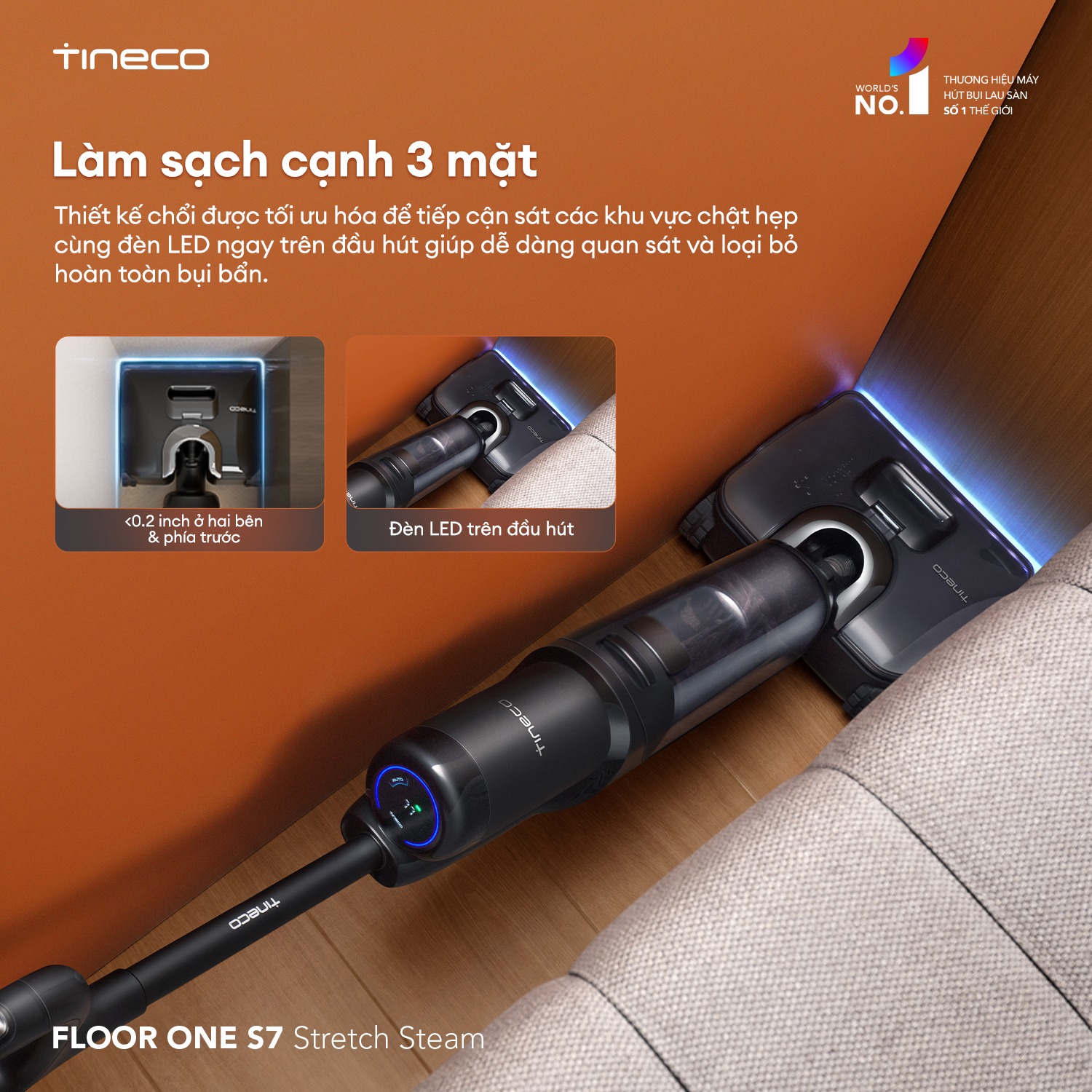 Tineco S7 Stretch Steam làm sạch 2 cạnh, không bỏ sót ngóc ngách nào